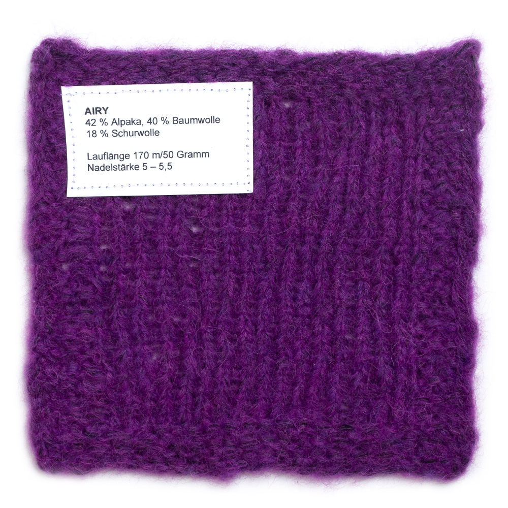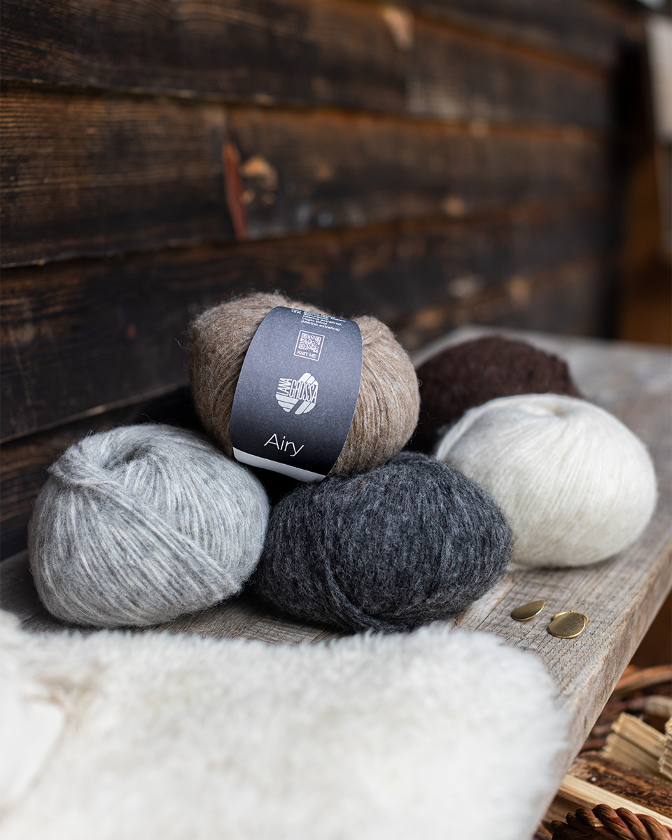Airy è un filato ultraleggero e soffice dal carattere raffinato – ideale per capi moderni e voluminosi che restano comunque leggeri e ariosi. La sua miscela inno ativa garantisce una mano morbida, un piacevole calore e il massimo comfort. Che si tratti di maglioni, giacche, scialli o accessori, con Airy nascono capi contemporanei dall’aspetto e dalla sensazione soffice.