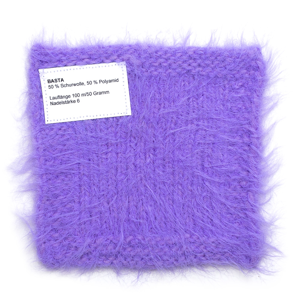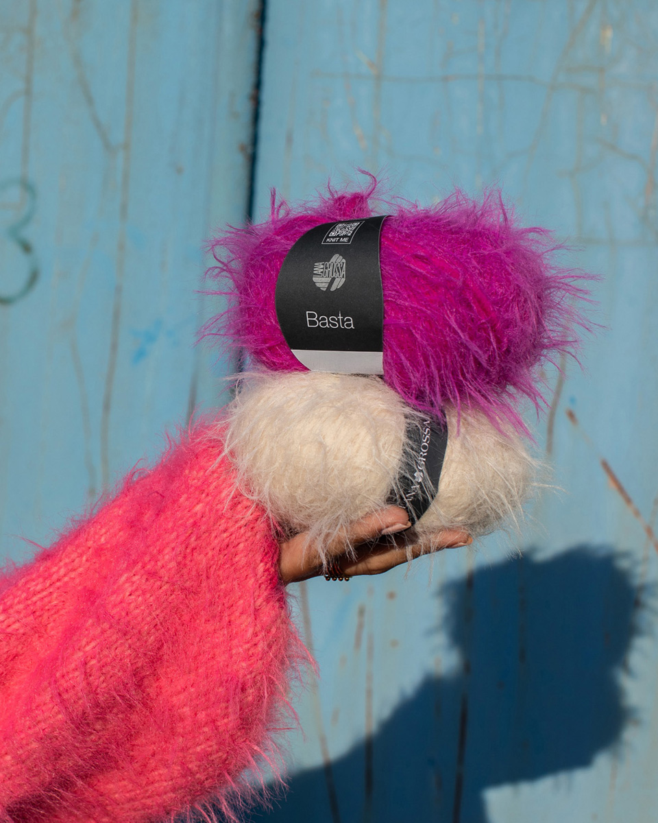 Basta è un filato straordinario dall’attuale effetto pelliccia sintetica. La combinazione di morbida lana merino e leggero poliammide conferisce al filato una mano soffice e un aspetto vaporoso. L’effetto frangiato aggiunge un tocco di stravaganza. Ideale per giacche alla moda, gilet, sciarpe o capi d’impatto che si distinguono per struttura e volume – perfetto per progetti a maglia creativi con effetto wow.