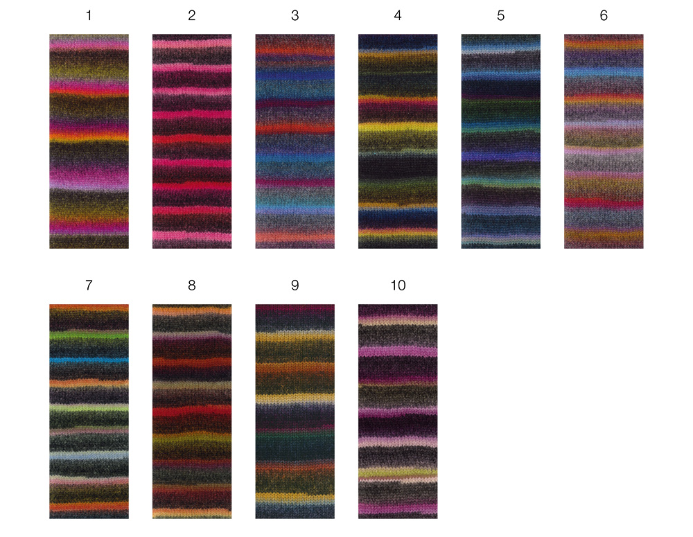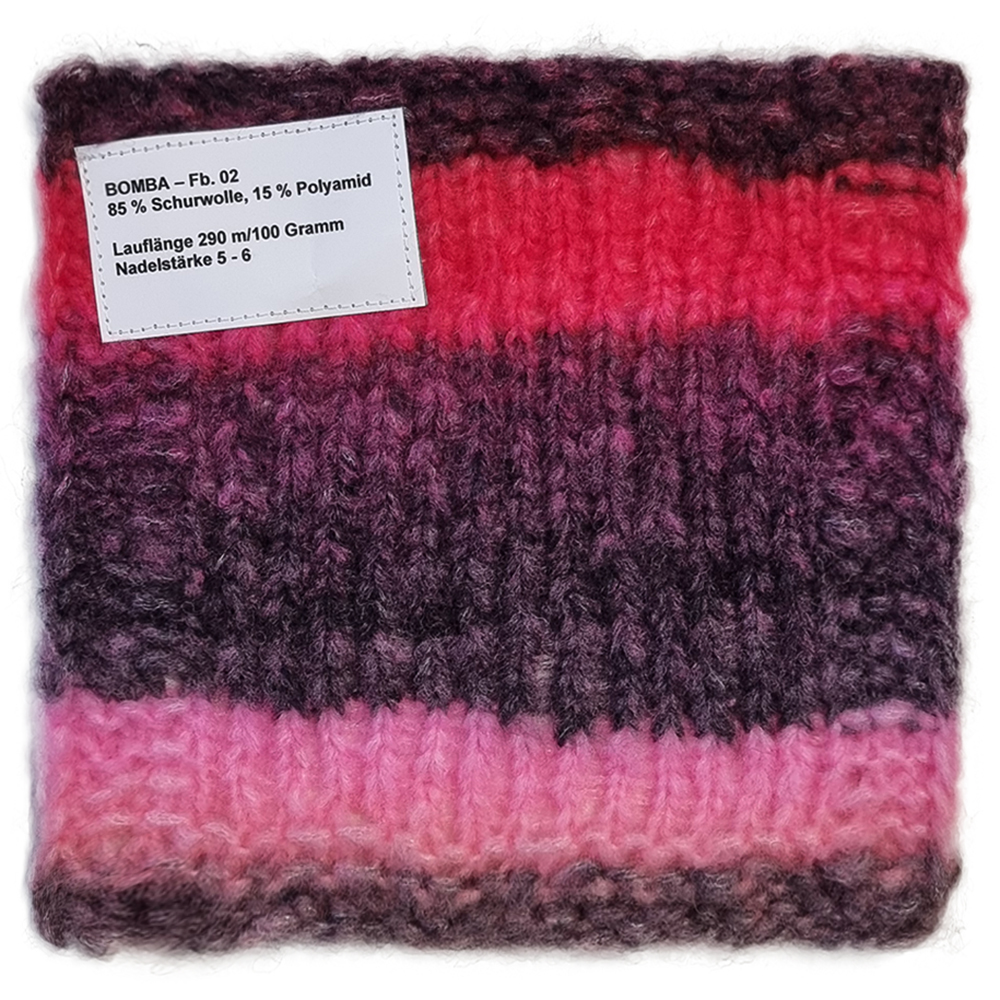 Righe multicolori e una consistenza soffice e voluminosa: il filato stampato Bomba garantisce risultati di lavorazione rapidi e d'effetto. Ideale per i principianti.