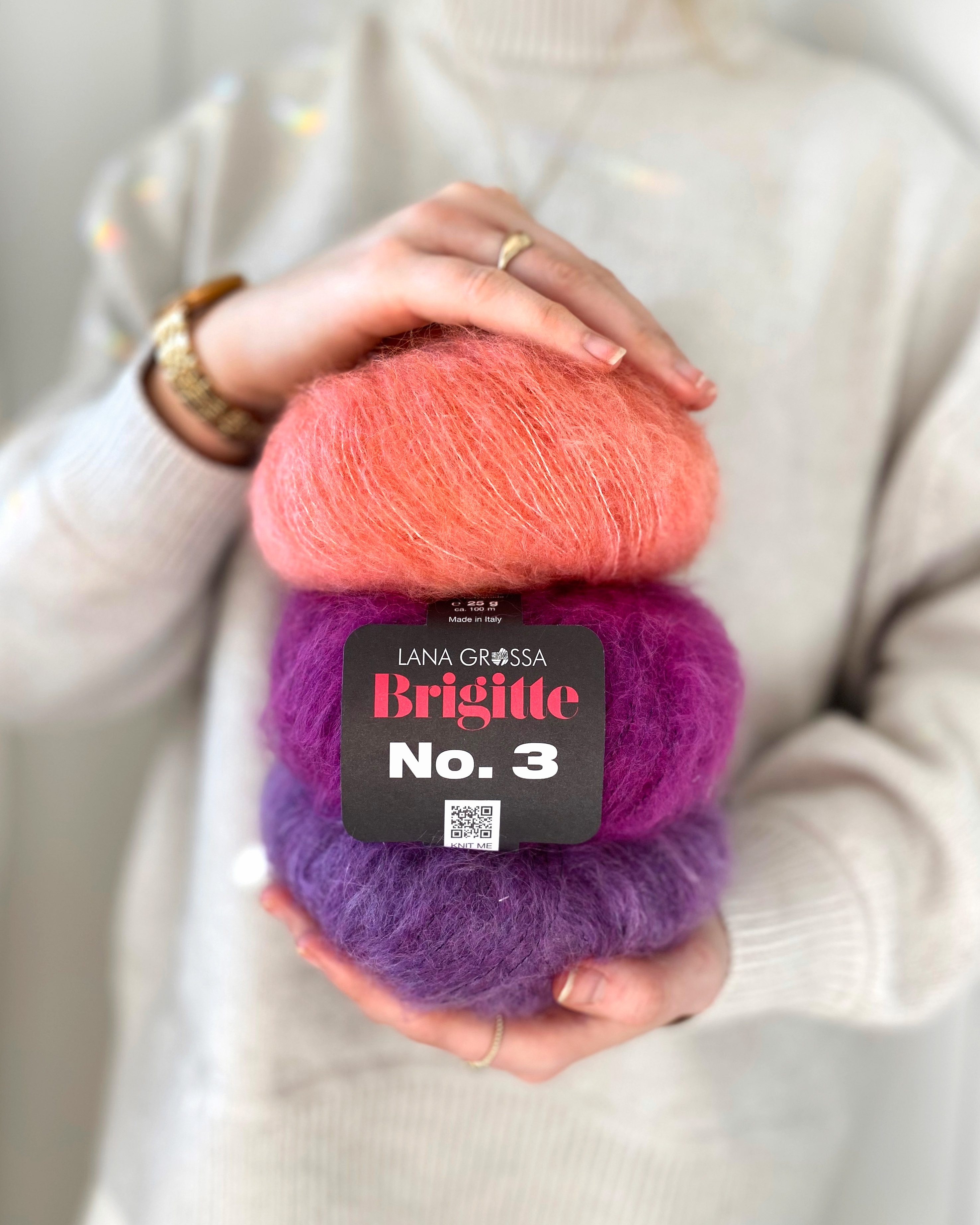 Brigitte No. 3 è un filato lace morbido e raffinato, realizzato in pregiatissimo Superkid Mohair e lana merino. Combina una peluria delicata con una leggera trasparenza, ideale per capi femminili e ariosi, caratterizzati da un’elegante leggerezza. Sia lavorato da solo che come filato di accompagnamento, Brigitte No. 3 dona a maglioni, scialli o cardigan una struttura soffice e sofisticata, con una trama fine e armoniosa.