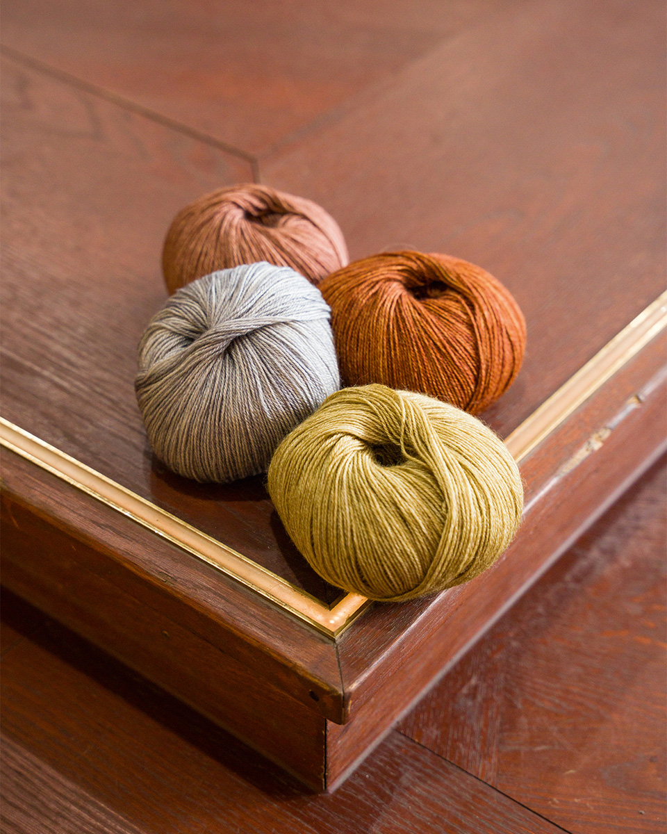 Delicato filato ritorto in modo classico, realizzato in seta di gelso e merino, avvolto in fibre di mohair.