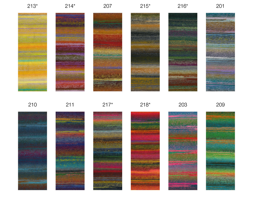 Colorissimo II è un affascinante filato sfumato in 100% lana merino, che con le sue combinazioni di colori intense e armoniose rende ogni creazione un vero colpo d’occhio. Morbido, caldo e al tempo stesso leggero, è ideale per maglioni, scialli, sciarpe o accessori colorati. Grazie alla lunga sequenza di sfumature, durante la lavorazione si creano transizioni morbide e motivi vivaci – senza alcuno sforzo.