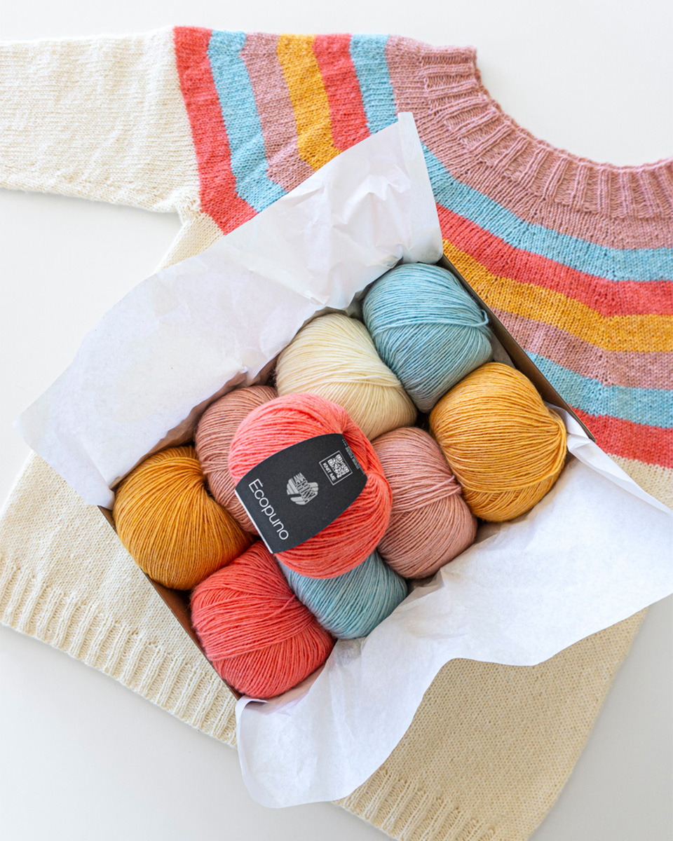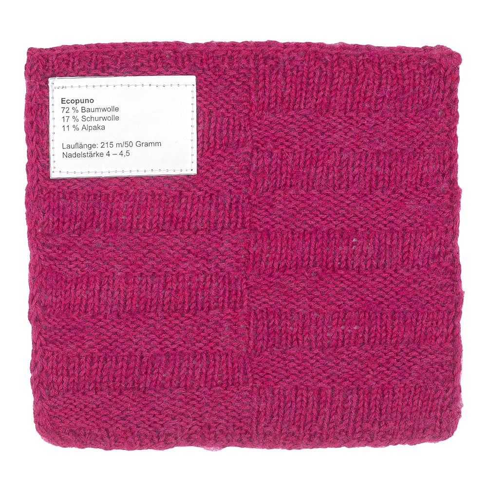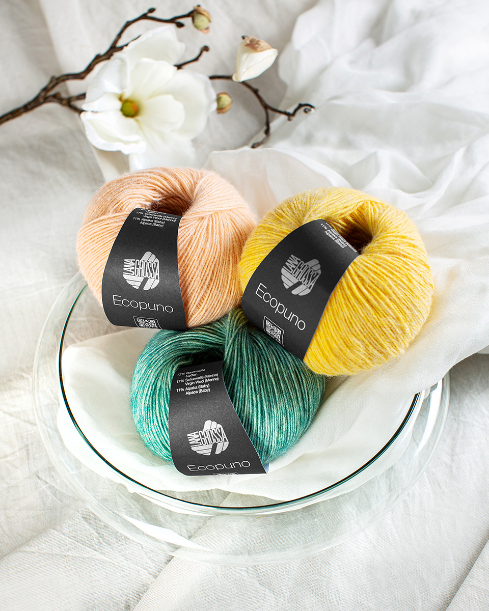Ecopuno è un filato di alta qualità adatto a tutte le stagioni, con una mano morbida e leggera e una resa elegante dei punti. L’innovativa miscela di cotone, lana merino e alpaca unisce il meglio di tre fibre naturali: freschezza traspirante, piacevole calore e morbidezza avvolgente. Questo filato è ideale per maglioni, scialli, cardigan e accessori – perfetto sia per l’estate che per le mezze stagioni. Ecopuno è stabile nella forma, traspirante e garantisce un comfort di utilizzo particolarmente piacevole.