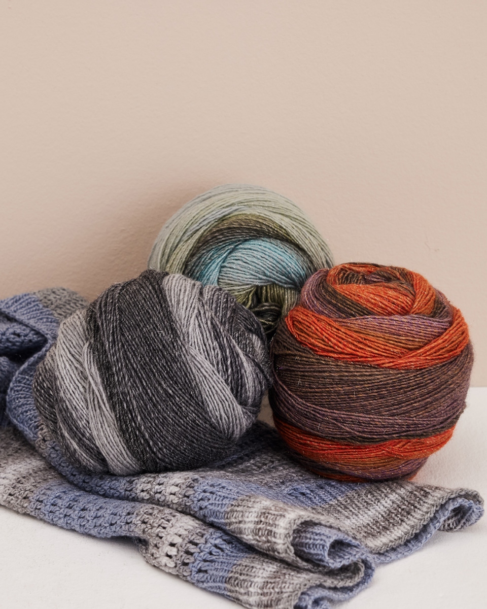 Filato di stoppino in colore sfumato con un delicato effetto lurex