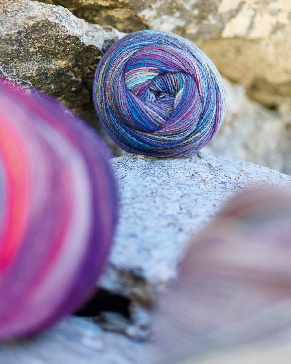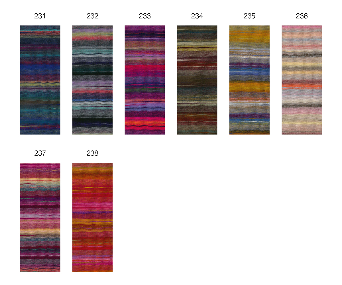 Lana Grossa Gomitolo Intenso conquista con vivaci sfumature di colore e una struttura morbida e voluminosa. Ogni gomitolo crea un gioco di colori unico, che risalta in modo particolare su sciarpe, stole o poncho.
