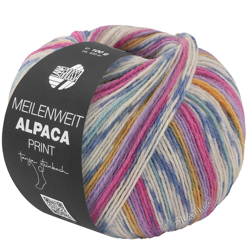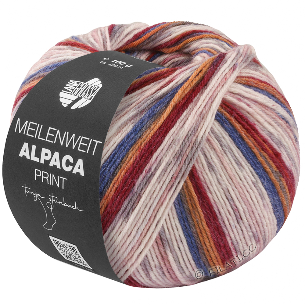 Lana Grossa Meilenweit Alpaca Print 6-fach unisce morbida alpaca a eleganti sfumature di colore. Il filato da calze a 6 capi è particolarmente caldo, resistente e piacevole sulla pelle.