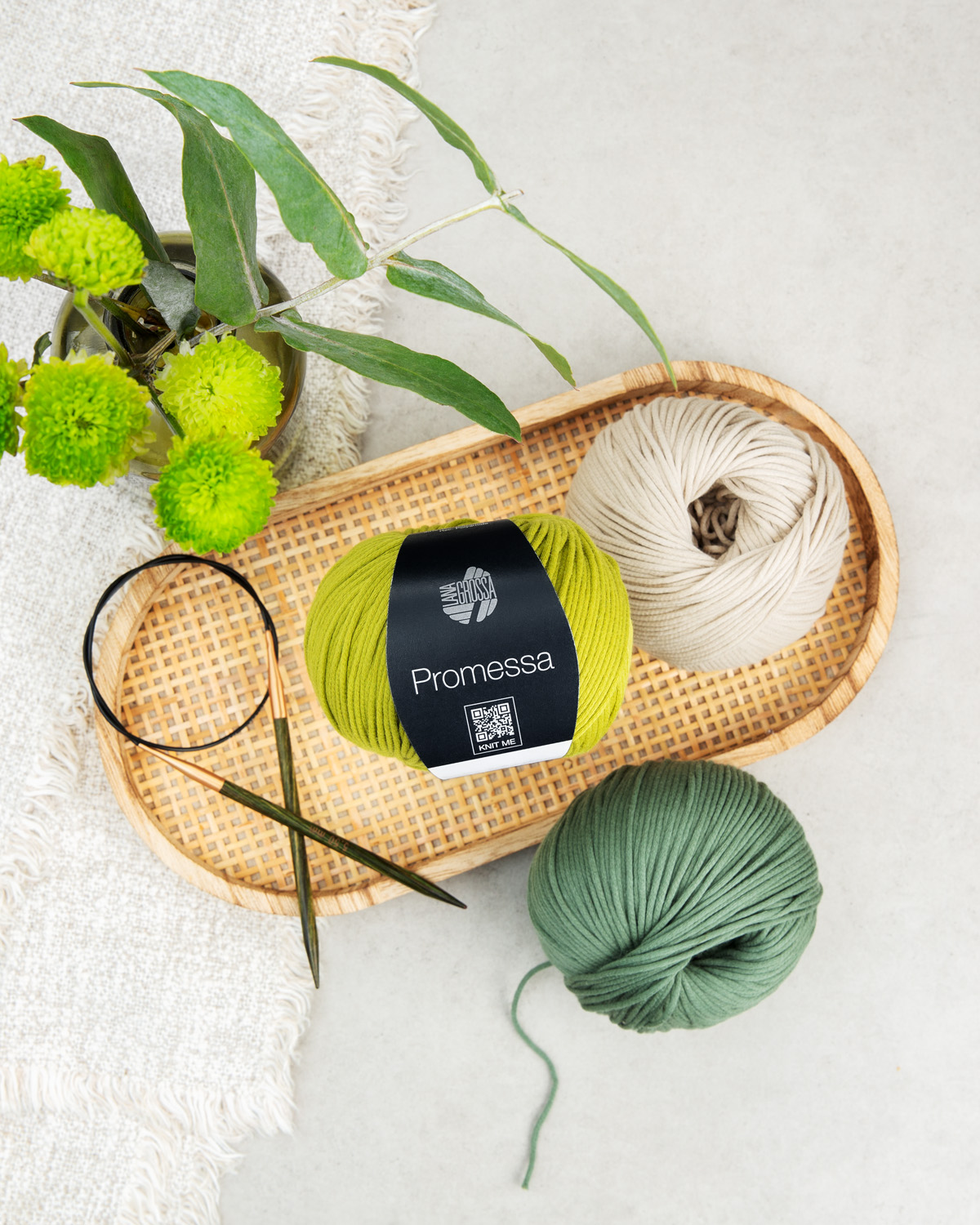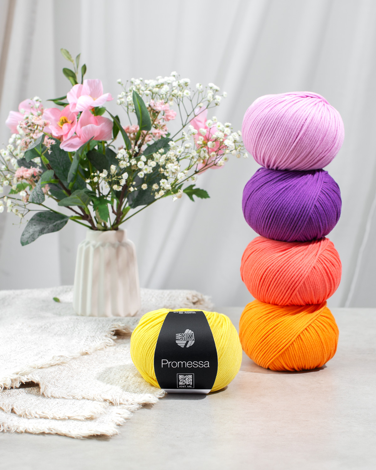 Promessa è un filato tubolare morbido e voluminoso con un aspetto naturale e un look moderno. L’innovativa miscela di cotone biologico e poliammide riciclato garantisce una sensazione di leggerezza, una mano morbida e una maglia uniforme.