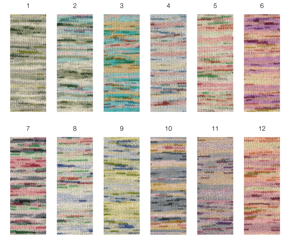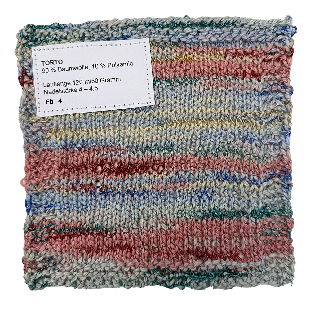 Torto è un creativo filato di cotone effetto speciale con un doppio gioco di colori: il filo di base presenta una delicata sfumatura mélange, avvolta irregolarmente da un sottile filo lucente. Il risultato è una maglia vivace e strutturata, con una brillantezza discreta e una naturale profondità.