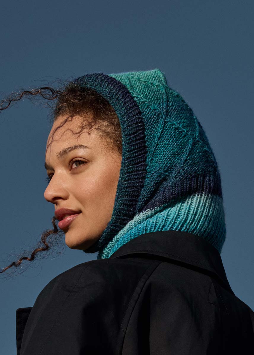 Lana Grossa, qualità “Gomitolo Fumo” (50% lana verine, 50% poliacrilico, 200 gr. = 700 mt.): 1 gom. = 200 gr. col. menta/turchese/verde acqua/petrolio chiaro/ petrolio scuro/antracite n. 511; ferro circolare corto o gioco di ferri n. 4,5