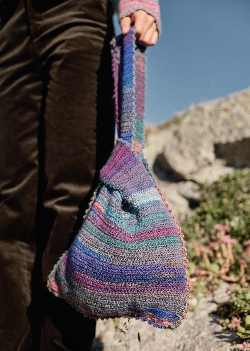 Lana Grossa, qualità “Gomitolo Intenso” (50% lana verine, 50% poliacrilico, 200 gr. = 700 mt.): 1 gom. = 200 gr. col. grigio scuro/grigio chiaro/grigio-blu/ petrolio/legno di rosa/blu-viola/grigio-verde n. 231; uncinetto n. 4,00