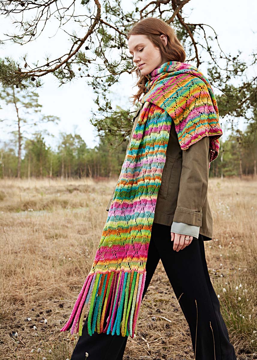 Lana Grossa, qualità Farfalla (94% lana merino extrafine, 6% poliammide, 100 gr. = 340 mt.): 400 gr. col. albicocca/arancione/pink/rosa/pistacchio/verde chiaro/ verde menta/verde acqua/giallo chiaro n. 5. Ferro circolare n. 7; 2 giochi di ferri n. 7