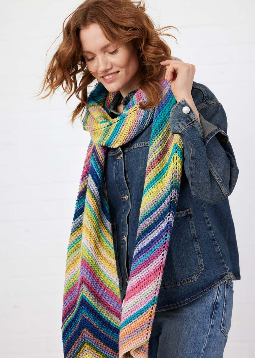 Lana Grossa, qualità Farfalla (94% lana merino extrafine, 6% poliammide, 100 gr. = 340 mt.): 400 gr. colore turchese/giallo limone/pink/lilla/viola/rosa antico/grigio- verde/verde chiaro/verde scuro/arancione n. 7. Ferro circolare n. 6,5.