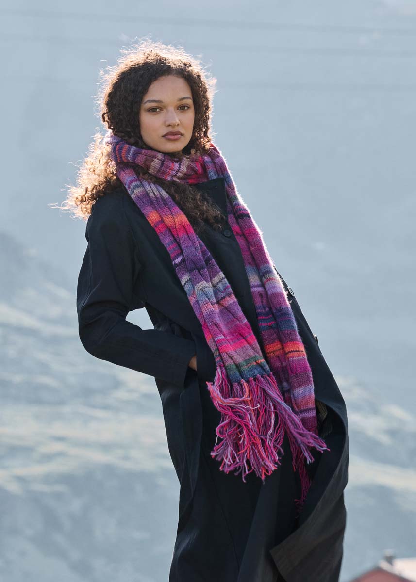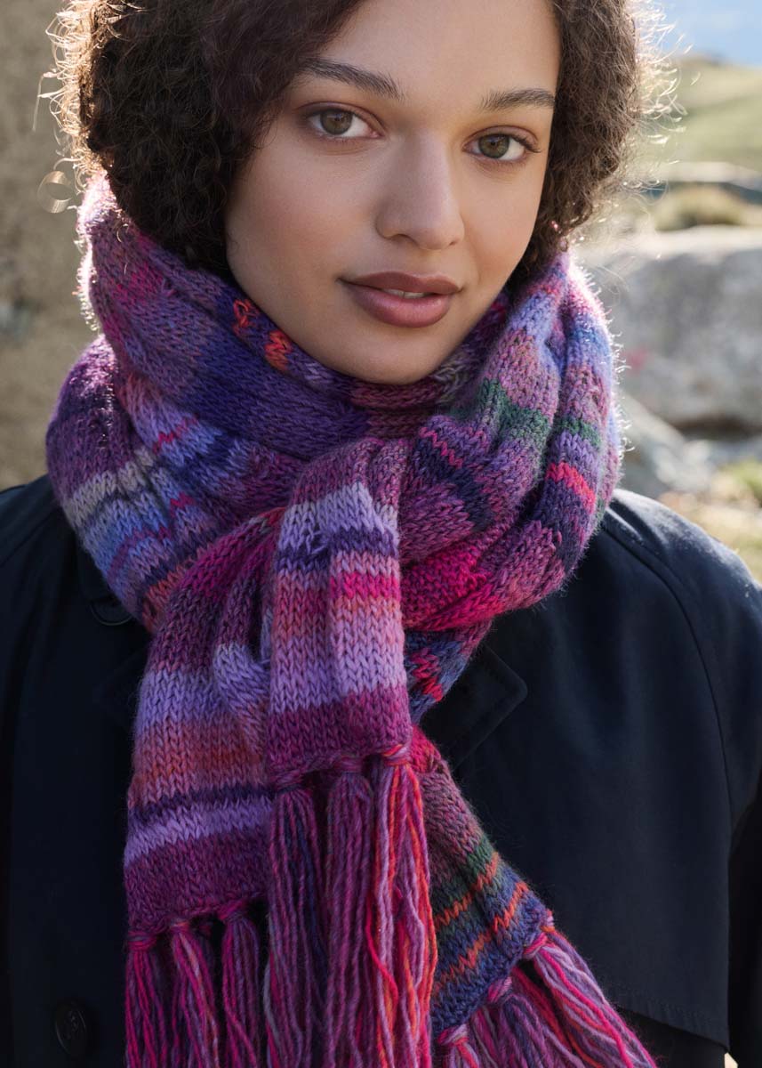 Lana Grossa, qualità “Gomitolo Intenso” (50% lana verine, 50% poliacrilico, 200 gr. = 700 mt.): 2 gom. = 400 gr. col. pink/fucsia/rosa/erica/grigio-lilla/orchidea/blu cobalto n. 233; ferri n. 5; ferro ausiliario; uncinetto n. 5,00.