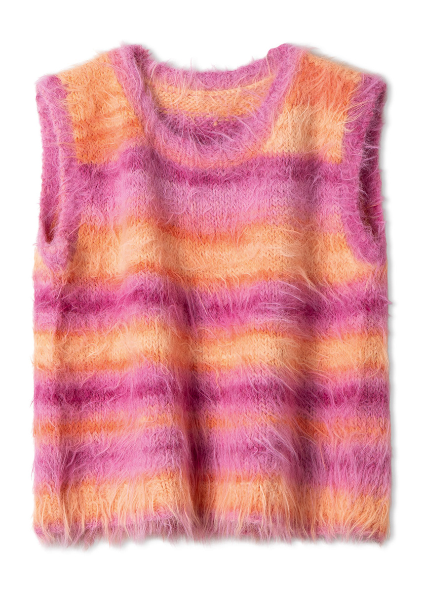 Lana Grossa, qualità Basta Mista (50% lana vergine (merino), 50% poliammide, 50 gr. = 100 mt.): 250 (250 - 300 - 300) gr. col. pesca/albicocca/arancione/rosa/pink/fucsia n. 111; ferro circolare n. 4 e n. 6; ferro circolare corto n. 4.