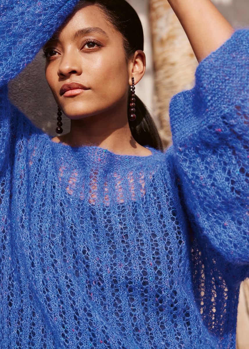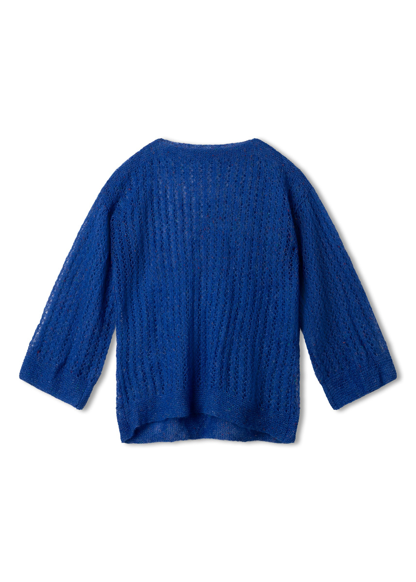 Lana Grossa, qualità Natural Superkid Tweed (60% mohair (superkid), 30% seta, 7% cotone, 3% poliestere, 50 gr. = 200 mt.): 200 (200 - 250 - 250) gr. col. blu inchiostro n. 635; ferri n. 5